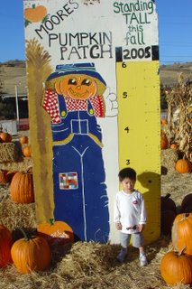 I went to the pumpkin patch again this year. We also took Auntie Ally with us. They had this new board there and I took a picture in front of it. I'm almost 3 feet tall according to the board. I saw all these pumpkins, a petting zoo, and best of all, a train that I Mommy and Daddy rode with me. We took home one medium sized pumpkin that is in front of our house now. In a couple weeks I will be going trick or treating at the mall and around my neighborhood. My dog, Inu is going to dress up this year and go with me too. I'll post a picture after we go out. We are dressing as the same thing.