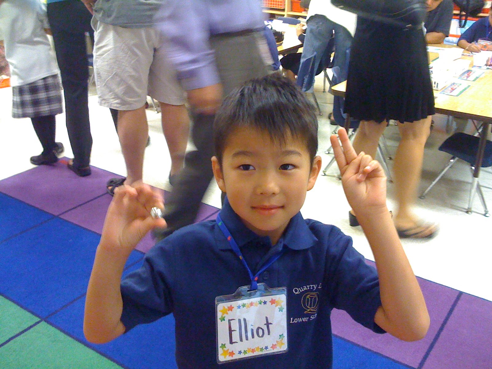 It's my first day of kindergarten. I was excited to go to school and meet new friends. Here I am exploring the new classroom and finding some new things to play with.